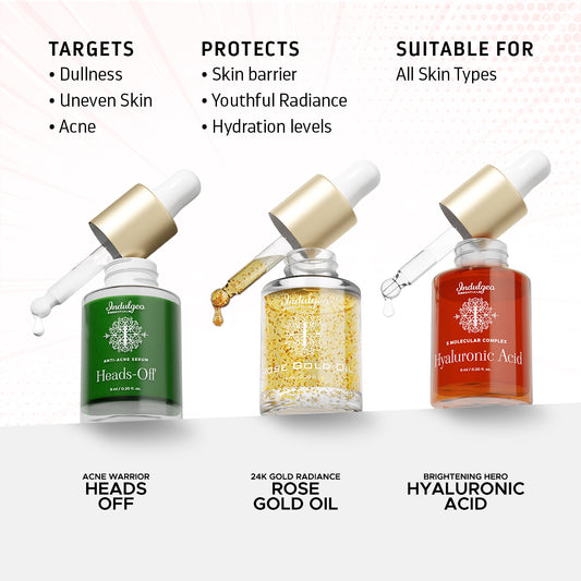 Flawless Complexion Trio (Heads Off 6ml + Rose Gold Oil 6ml + Hyaluronic Acid 6ml)