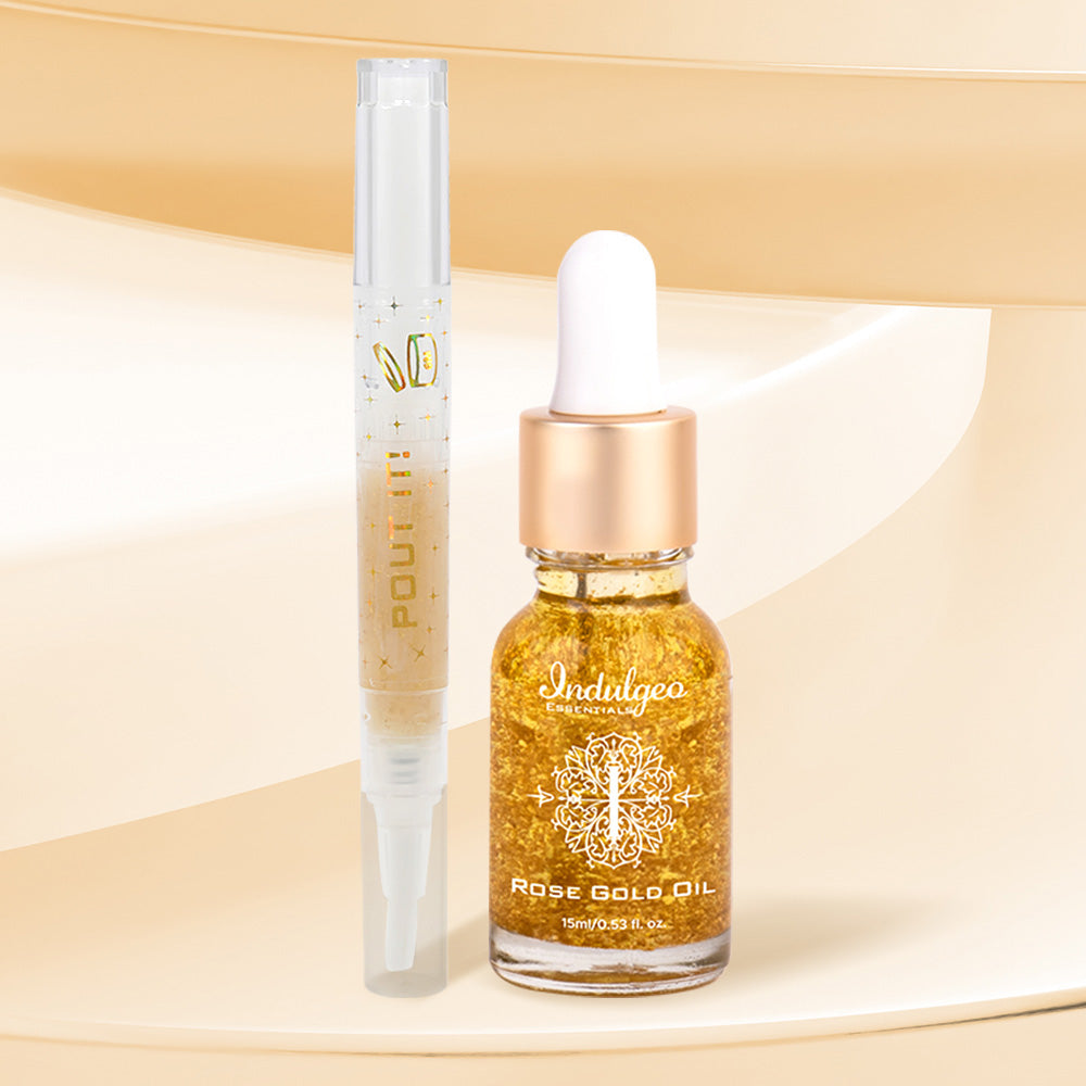Inspired by the virtuoso of makeup Namrata Soni, this blend is specially designed to give you perfect plumped up lips for flawless lipstick application and perennial nourishment. A corsage of vital essential oils for your lips infused with 24K gold flakes, this lip oil is the best way to pamper your pout! This concoction has Cinnamon Oil, an all- natural lip plumping solution and an exotic blend of edible grade cold pressed oils like Argan Oil, Jojoba Oil, Evening Primrose Oil infused with the finest Jamaican coffee beans and French vanilla pods. It contains the finest quality of unrefined wildcrafted Beeswax which is incredibly moisturizing and is an excellent emulsifier (enabling it to really lock in moisture), so it also has the ability to soothe any pain caused by dryness and dehydration. It also forms a protective layer on your lips that can shield them from harmful UV rays, as well as prevent infections or possible cold sores.