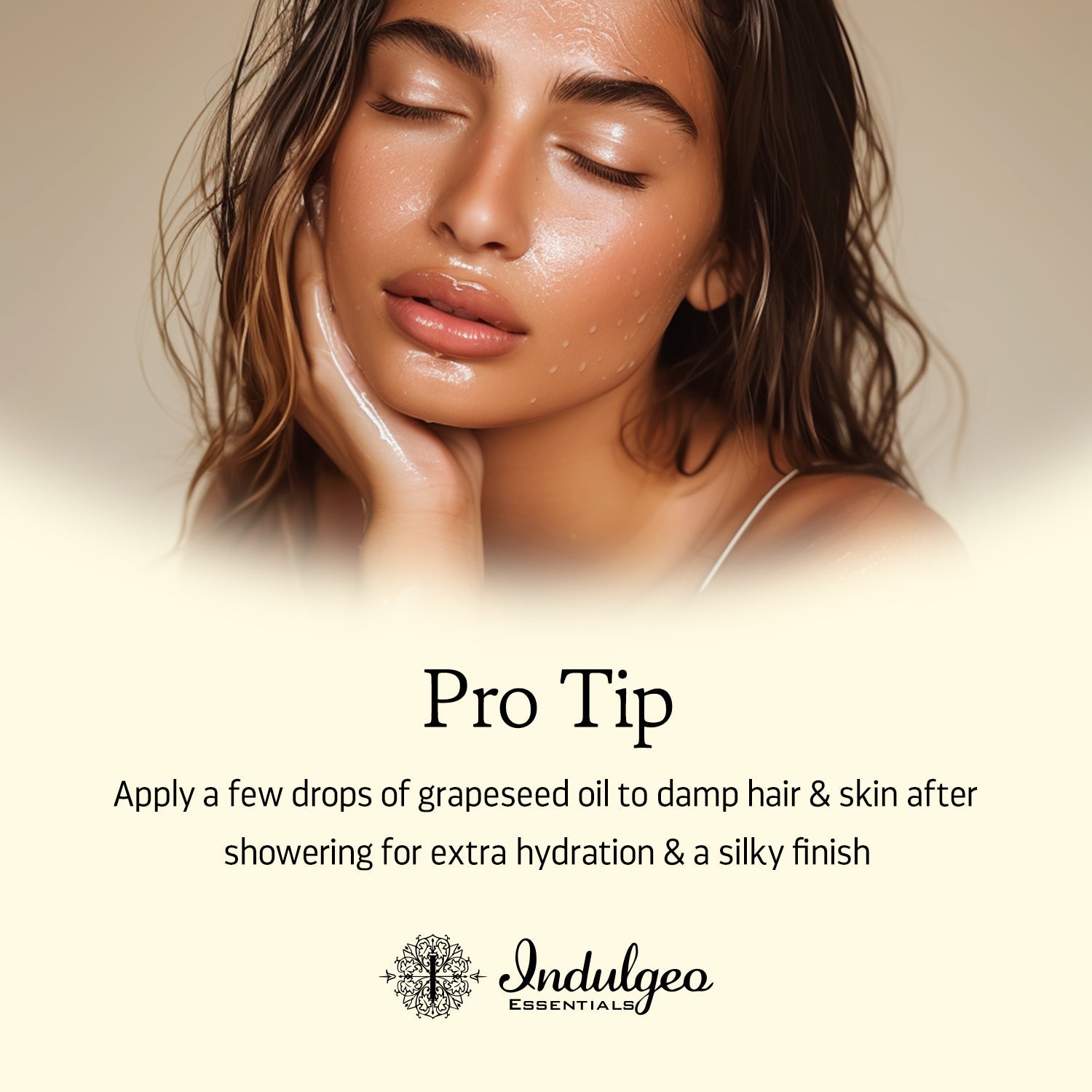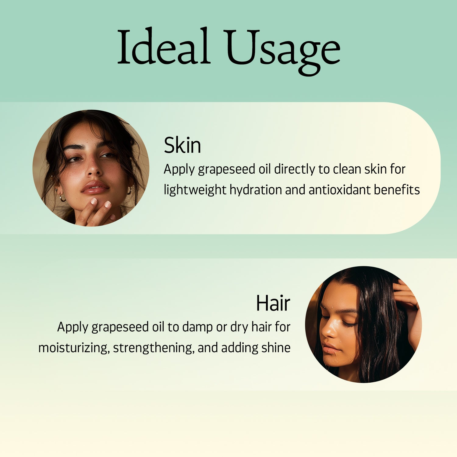 100% pure certified Grapeseed (Vitis Vinifera) oil (Sourced from Spain)